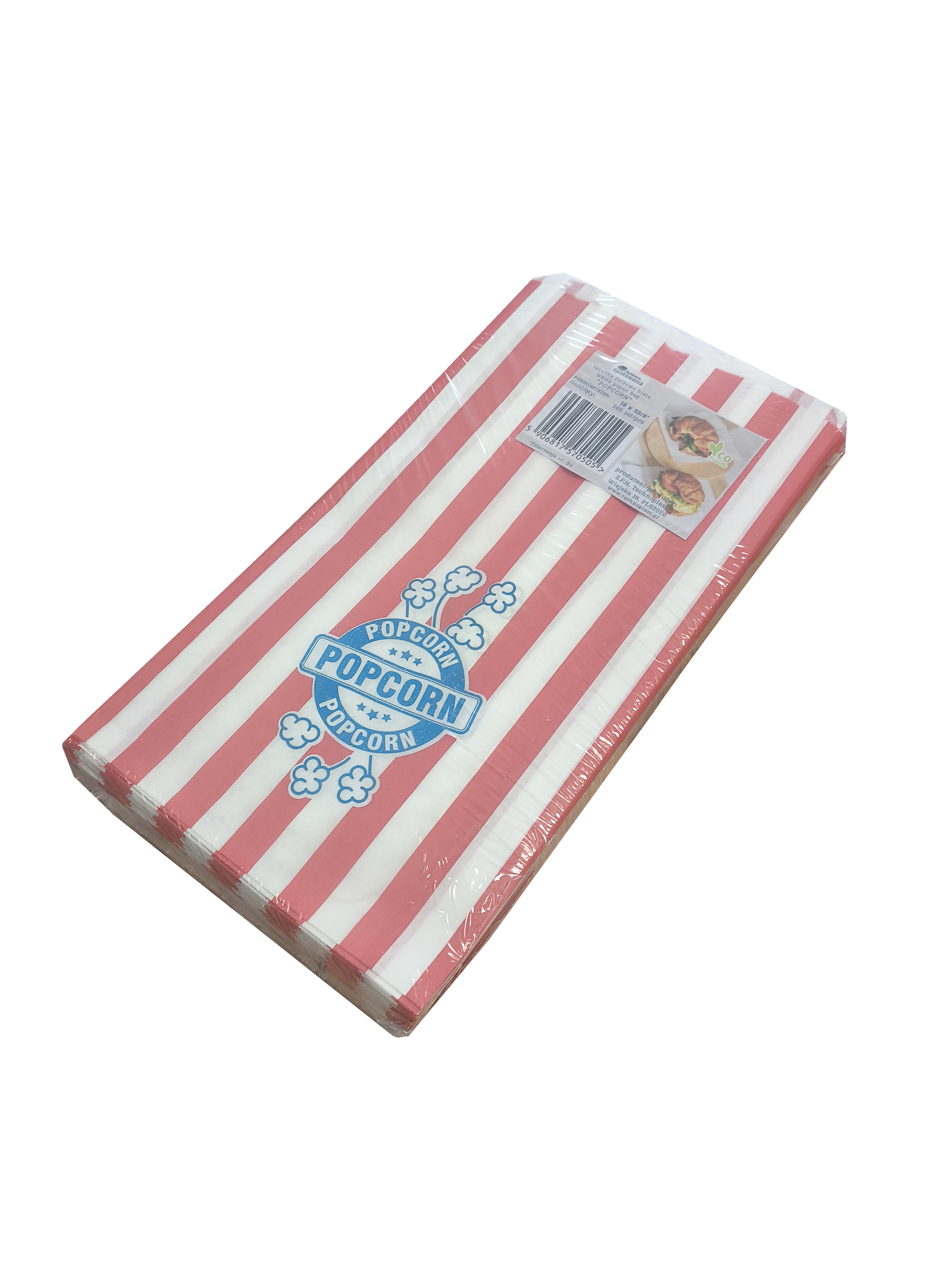 Torebki na popcorn to popularne opakowania używane do serwowania popcornu, szczególnie w kinach, na festynach, podczas imprez plenerowych i w domach. Papier nie nasiąka tłuszczem, pozwala na serwowanie wygodnych porcji popcornu, w sam raz dla młodszych (i nie tylko!) smakoszy tego przysmaku.